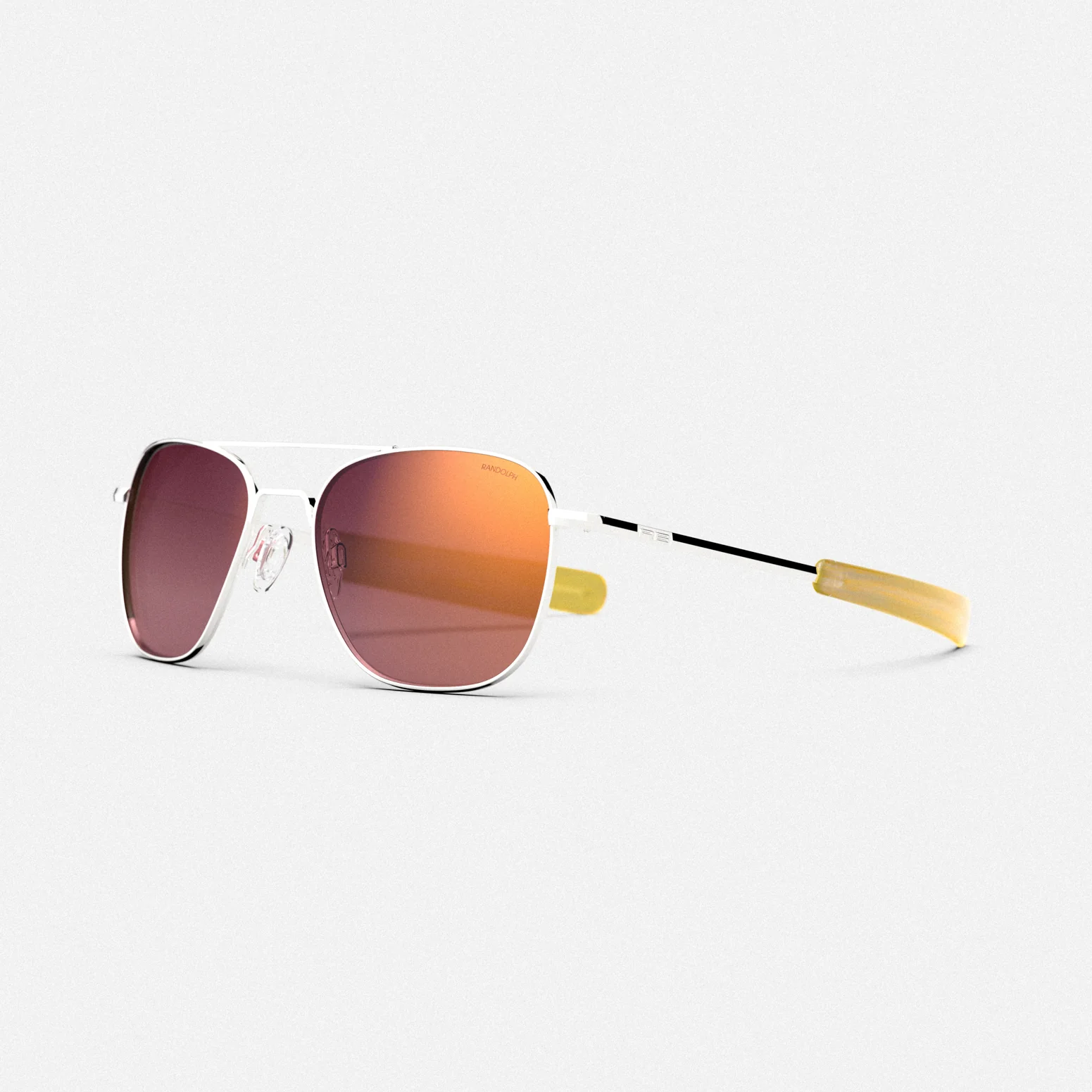 Inspired by the iconic aviator Amelia Earhart, the Randolph Amelia Runway Aviator features a 23k White Gold frame finish, Canary Gold bayonet temple tips, and all-new semi-polarized Sunset Rose lenses. Each pair comes with custom Amelia Runway Collection case, cleaning cloth, and packaging, and a premier silk twill scarf, making it a perfect tribute to Earhart’s legacy. Celebrate history and elevate your style with this limited-edition Aviator.